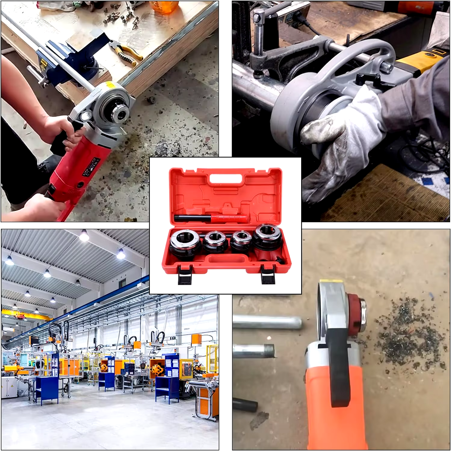 Kit de Enhebrador de Tuberías Manual con Mango de Trinquete - Incluye 4 Tallas y Estuche de Almacenamiento