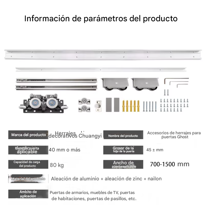 - Capacidad de Carga: Soporta puertas de hasta 150 kg